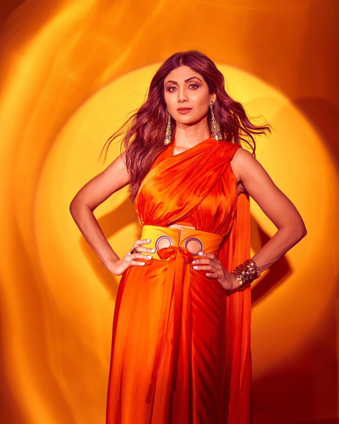 If there's one celebrity who has mastered the art of dramatic draping, it is Shilpa. Adding structure and glamour to her belted saree drape results in a cinched silhouette that flatters every curve. Whether paired with sequins or silk, her belted twist makes the saree into a power look fit for sangeets or evening galas.