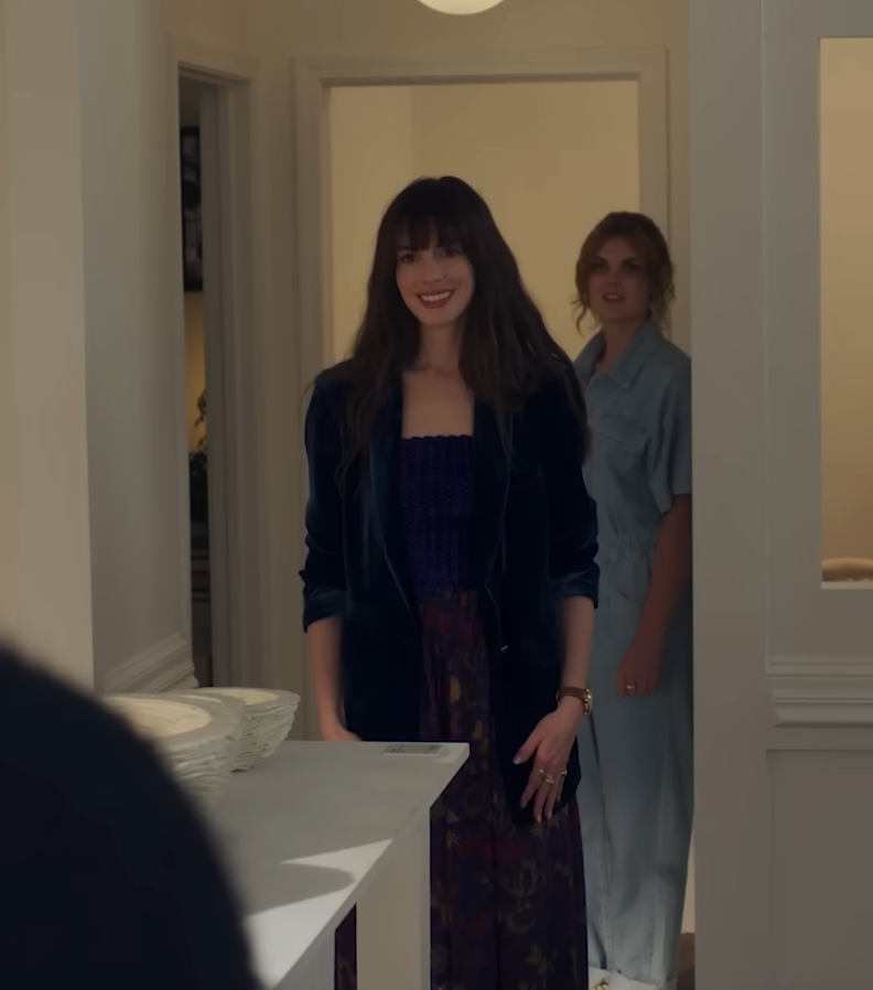 In The Idea of You, Anne plays with texture and tone in a layered blue outfit that’s both refined and approachable. If you’re unsure how to mix colour, start small — pair different fabrics or prints within the same colour family. It’s an easy way to look polished without overthinking your palette.
