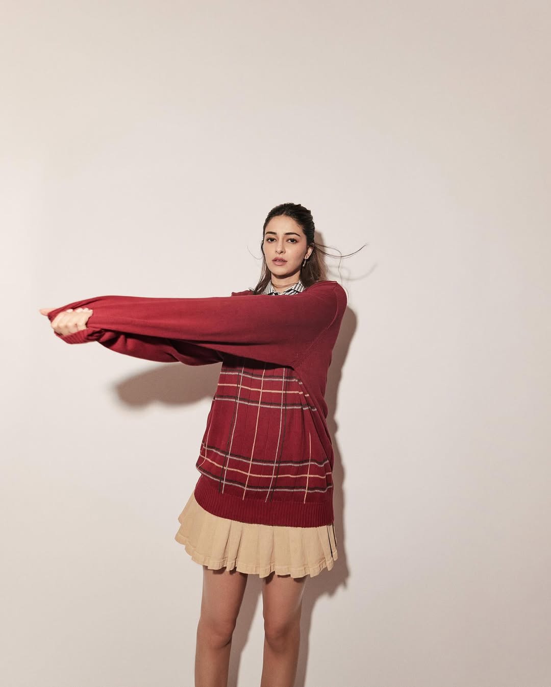 Nothing screams youthful winter chic like an oversized sweater with a pleated mini skirt, and trust us, this is something both Ananya Panday and Khushi Kapoor have been spotted in several times.
