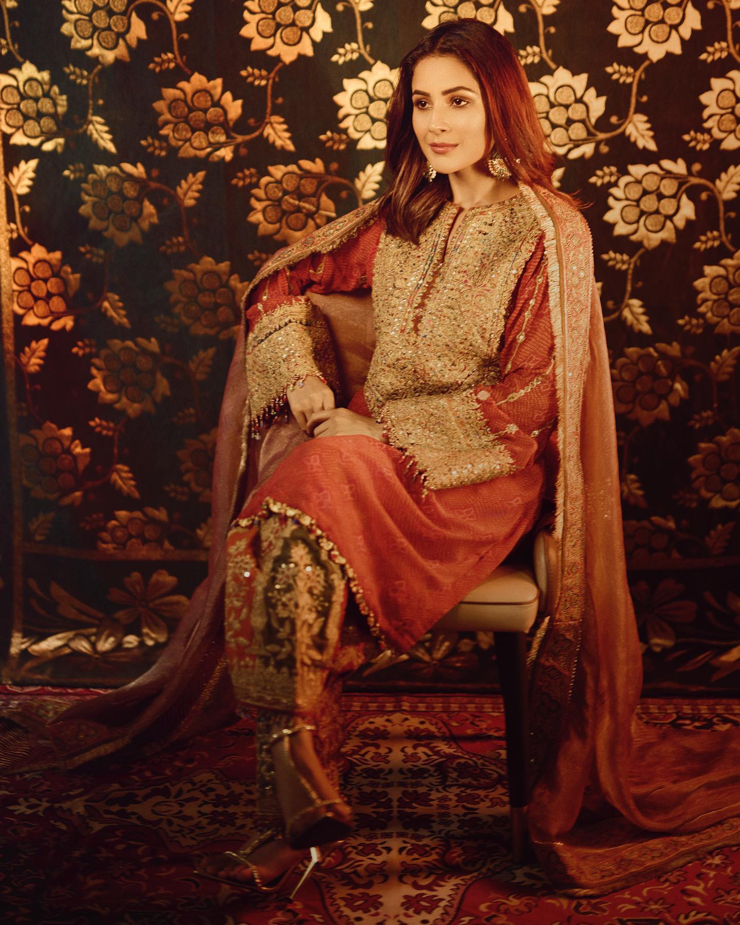 Think pastels, organza, and a tad of embroidery. The kind of suits that allow you to twirl and move while still looking put together. Styled with juttis, and dainty bangles with a touch of kajal and you’ll have the girl next door vibe.